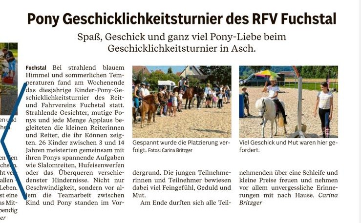 Großer Andrang herrschte beim traditionellen Trainingsturnier des Fuchstaler Reit- und Fahrvereins (RFV). Zahlreiche Zuschauer verfolgten auf der Ascher Anlage das Abschneiden der knapp 150 Starter in den sieben Wettbewerben – bis auf drei junge Herren waren alles Reiterinnen. Für den Gastgeber war es zugleich ein Abschiednehmen vom Grasplatz: Noch in diesem Jahr soll für rund 100000 Euro ein 70 Meter langer und 30 Meter breiter Sandplatz gebaut werden.